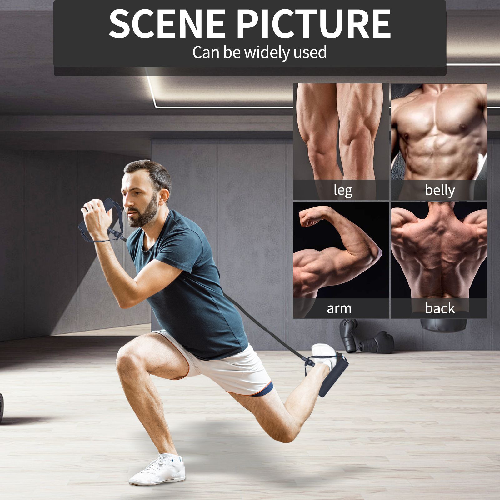 5.5. Versatility: Each set of products includes three wall anchors, five fitness belts with buffer handles, which can be installed at three different heights for fitness exercises in different parts of the body (such as arms, shoulders, back, chest), abdomen and legs from different angles.