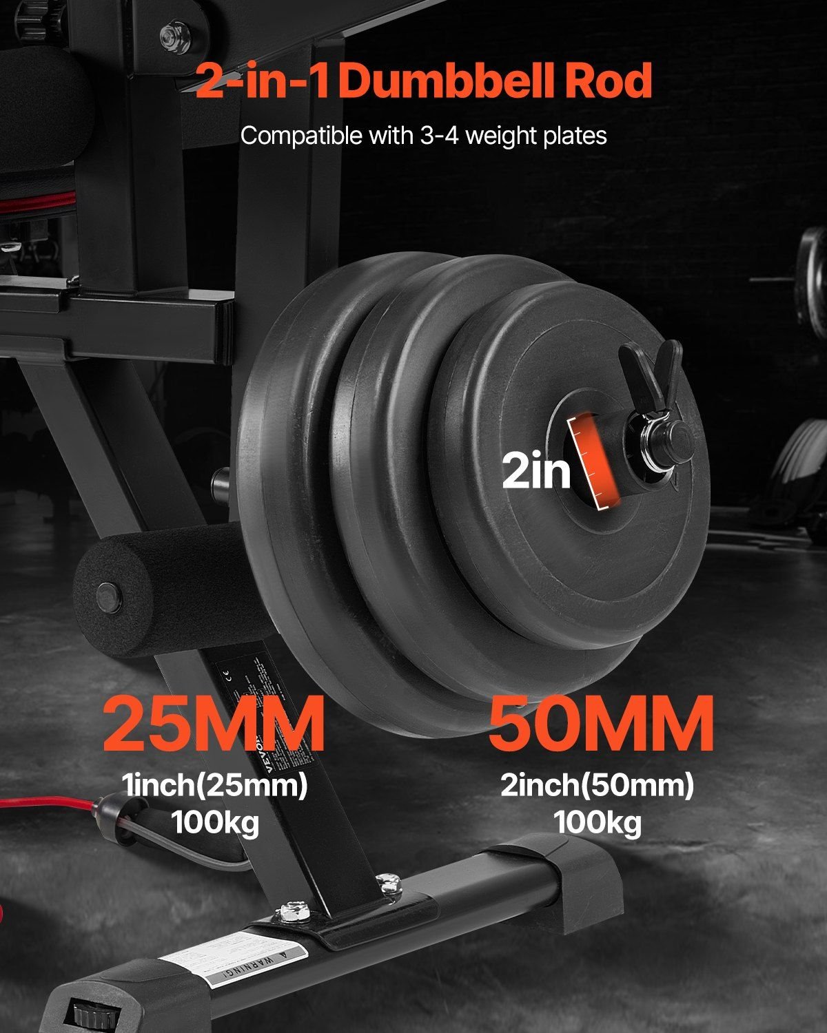 This strength training bench includes a removable leg extension and a 19-inch extra-wide preacher pad. The preacher pad is adjustable with 5 positions, and the double-leg rest structure is compatible with 3-4 weight plates (1/2-inch dumbbell rod).