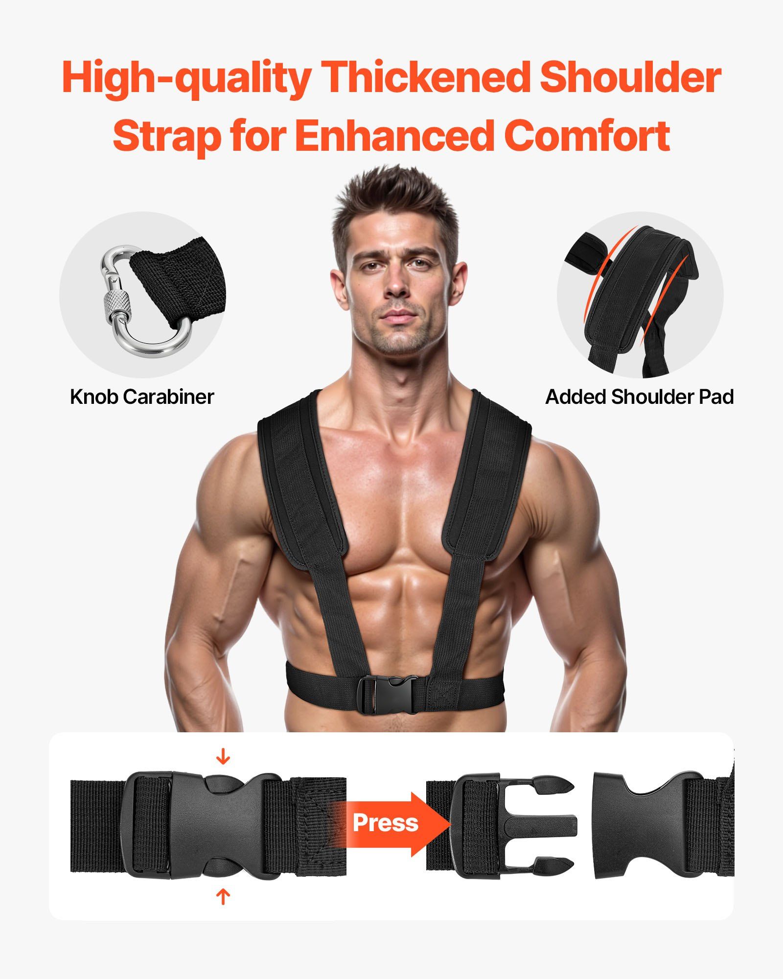 2.Enhanced Comfort & Security: This workout sled features an upgraded, thicker harness with reinforced stitching and sponge padding for better comfort. Adjustable shoulder straps adapt to your needs. Upgraded knob carabiner ensures reliable performance