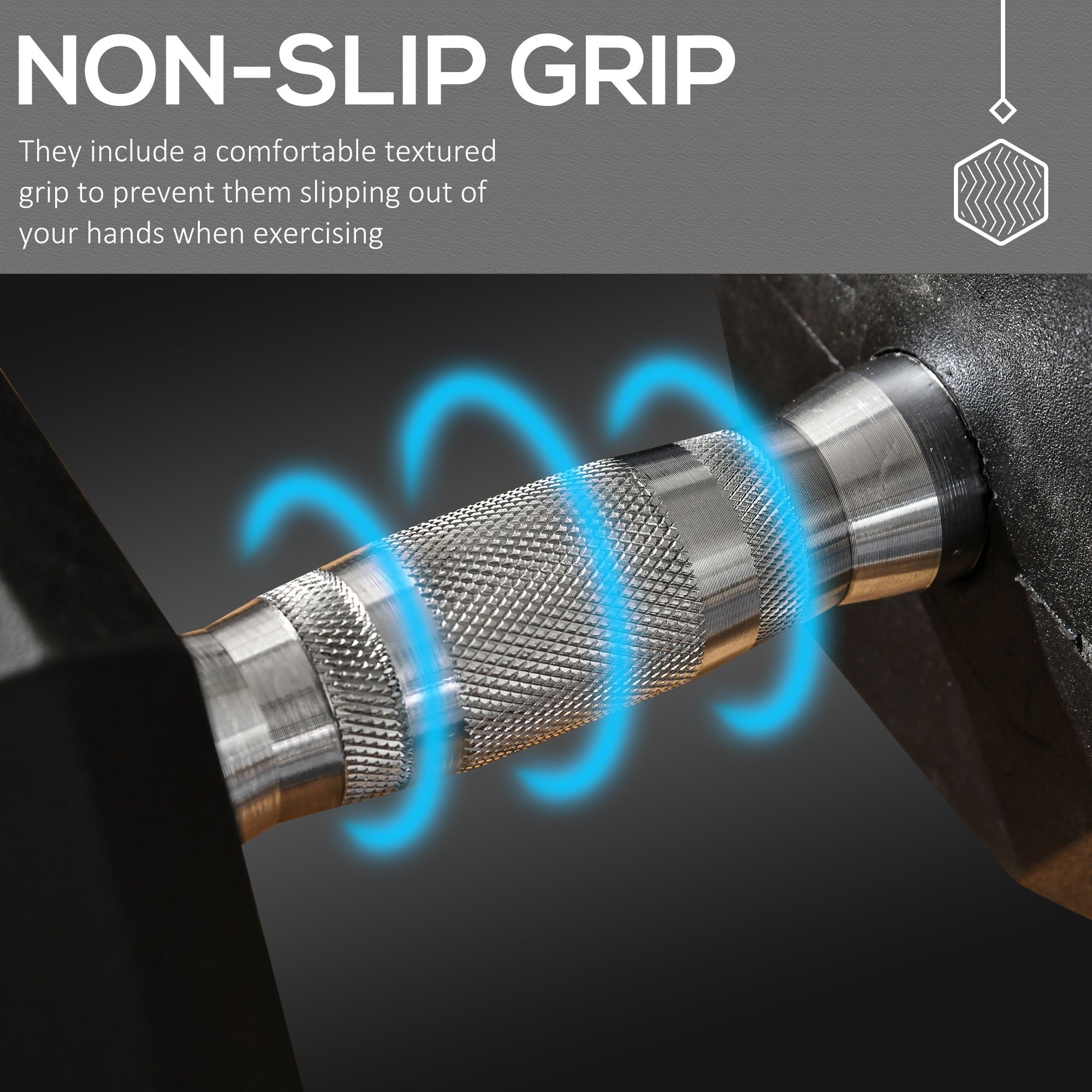 Hexagonal Shape: The hexagonal shape prevents the dumb bells from rolling, keeping them right where you put them, even when rummaging in storage.